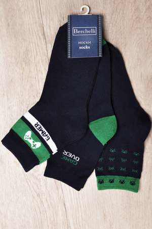 Оригинальные мужские носки в стиле компьютерных игр. В упаковке 3 пары - по 1 паре каждой расцветки
