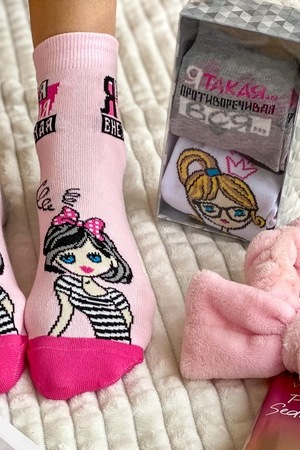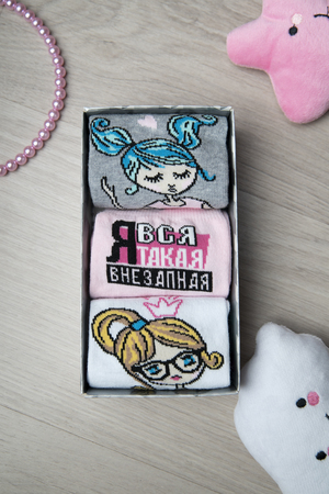 Подарочный набор оригинальных женских носков. В комплекте 3 пары в красивой картонной упаковке. Прекрасный подарок на 14 февраля и 8 марта. В продаже имеются аналогичные подростковые носки Каприз