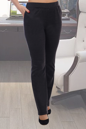 Брюки женские из жаккардового трикотажа с переплетением в "елочку", прямые, с карманами, пояс на резинке. Брюки элегантные и удобные, для офиса и деловых встреч.
