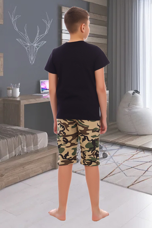 Костюм для мальчика состоящий из футболки и удлинённых шорт. Горловина обработана эластичной рибаной. Костюм предназначен для повседневного использования, так же может быть использован в качестве оригинального подарка. Футболка украшена современным принтом - морпехи.