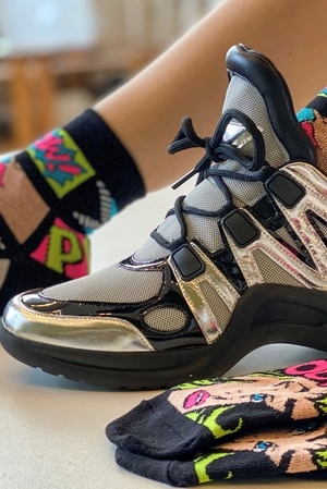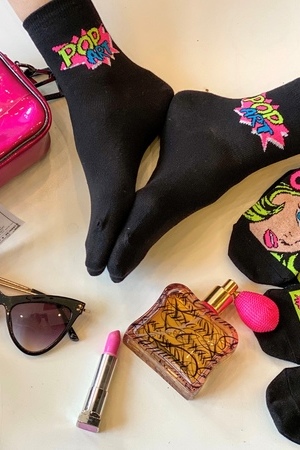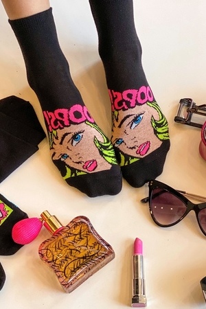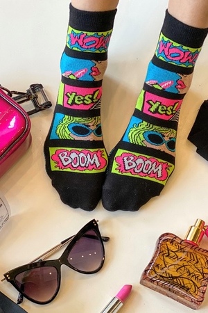 Оригинальный набор ярких подростковых носков в стиле поп-арт. В упаковке 3 пары - по 1 паре каждой расцветки. В продаже имеются аналогичные женские носки Комикс. Упаковка - пакет