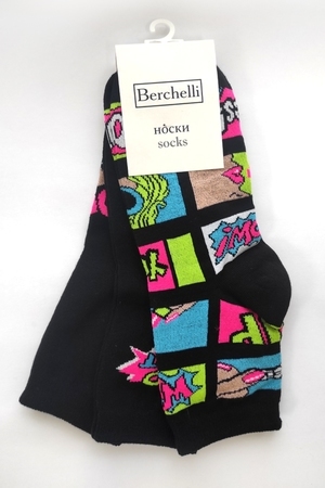 В упаковке 3 пары в спайке под картонной этикеткой - по 1 паре каждой расцветки. В продаже имеются аналогичные женские носки Комикс