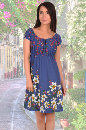 Сарафан из кулирки. Дизайн в виде ярких цветов, три варианта расцветки. Короткие рукава, общая длина чуть выше коленей. Размеры от 44 до 54. Внимание, данный товар не продается в розницу!