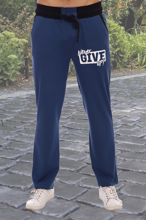 Брюки прямого кроя в стиле "casual". Карманы обработаны эластичной рибаной. На передне половинке брюк расположена контрастная печать. Пояс прошит на поясной машине. Спереди на поясе втачная планка с люверсами. Дополнительная регулировка пояса шнурком.
