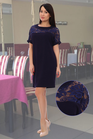 Женское платье прямого силуэта, с кокеткой из кружева, рукав спущенный.