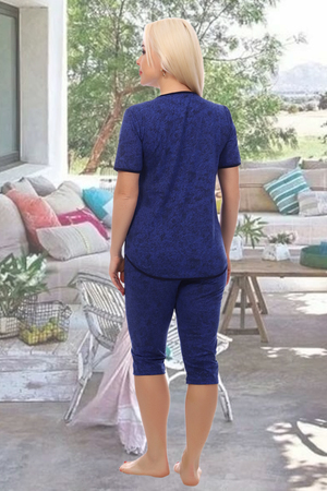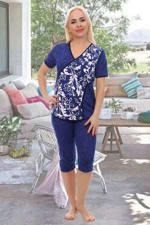 Костюм женский - блузка свободного покроя с карманом, рукав короткий, бриджи полуприлегающие, низ подогнут