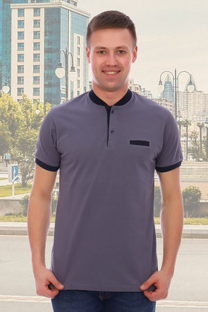 Мужская футболка прямого кроя. Воротник на манжете, планка с пуговицами. На полочке - имитация кармана