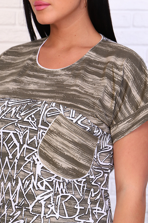 Женская туника со спущенной проймой, на кокетке выпущен кант. На полочке карман.