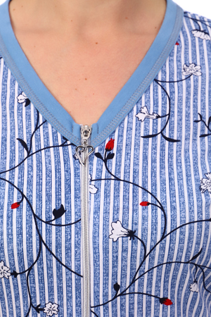 Халат женский на молнии. Короткий рукав, с карманами, отделка контрастной тканью на рукавах, горловине и карманах. Декоративная молния, на талии подрез
