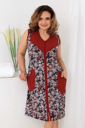 Удобный и практичный халат без рукавов. Застежка на молнию, оригинальный крой полочки. Отлично подходит для лета.