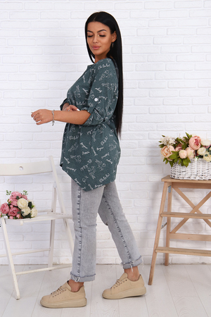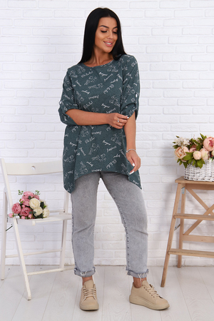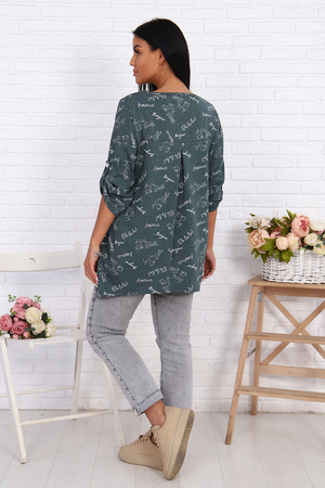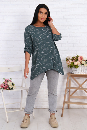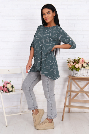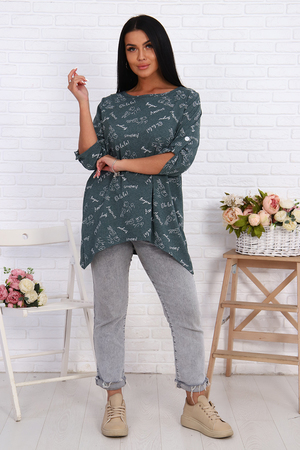 Женская туника свободного А-образного покроя выполнена из 100% хлопчатобумажного трикотажного полотна. Округлая горловина обработана окантовкой. Рукав 3/4 собран патой с декоративной пуговицей. Спинка на кокетке, со складкой, что делает тунику более свободной. Фигурный низ изделия дополняют удлиненные бока, которые визуально вытягивают фигуру и делают ее более стройной. За счет свободного кроя туника скрывает недостатки и делает ее более привлекательной для носки.