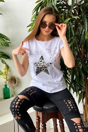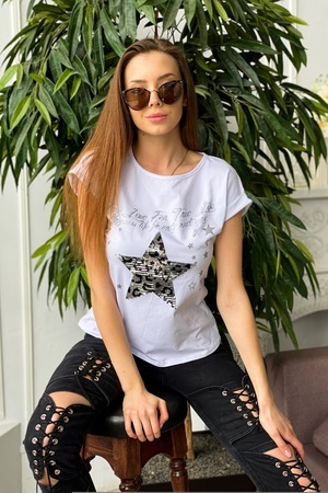 Анастасия Александровна26.09.2020 в 07:43Любимая футболка в моем гардеробе. Ткань очень мягкая, плотная. Идёт в размер. Фасон очень удачный. Звезда сделана из пайеток, сверкает на солнце. Проносила все лето, ни одна пайетка не оторвалась. Брала в черном цвете. Хочу ещё заказать и в черном, и в белом цвете. Рекомендую. Натали, большое спасибо за такую качественную футболку!!!