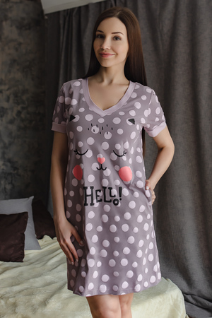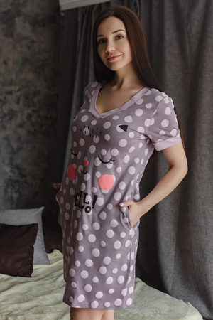 Туника из кулирки с печатью, горловина с отделкой