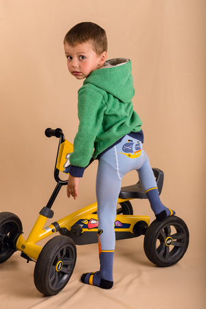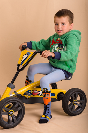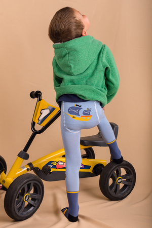 Яркие колготки для мальчиков. Однотонный верх, снизу вывязан пират, сзади - корабль.