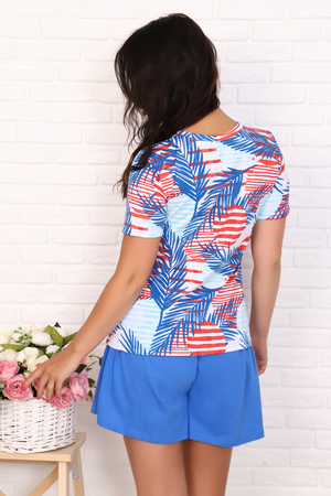 Костюм женский. Футболка с коротким рукавом, принт пальмы. Шорты очень свободного кроя, красивого небесно-голубого цвета