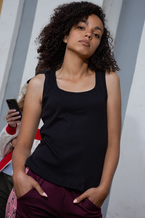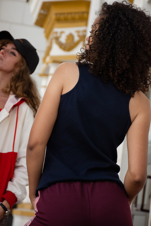 Майка-борцовка прилегающего силуэта, средней длины, с округлой горловиной. Майка выполнена из эластичного полотна. Горловина и проймы майки обработаны бейкой из основного полотна. Цвета в ассортименте