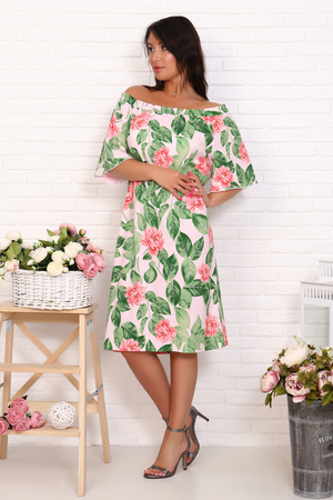 Платье женское, верх на кулиске, расклешенный рукав, обработан краевкой, свободный крой