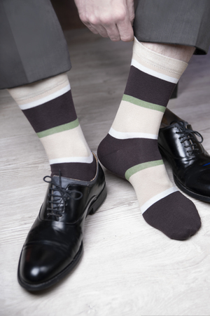 В упаковке 6 пар - по 2 пары каждой расцветки (2 однотонных, 1 в полоску). Цвета - коричневый и серый, подбираются по цвету.