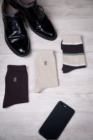 Набор мужских носков в стильном лаконичном дизайне. В упаковке 6 пар - по 2 пары каждой расцветки (2 однотонных, 1 в полоску). Цвета - коричневый и серый, подбираются по цвету.