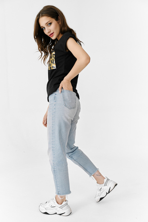 Футболка полуприлегающего силуэта, средней длины, с округлой горловиной. Рукав цельнокроеный, короткий, на манжете с отворотом.