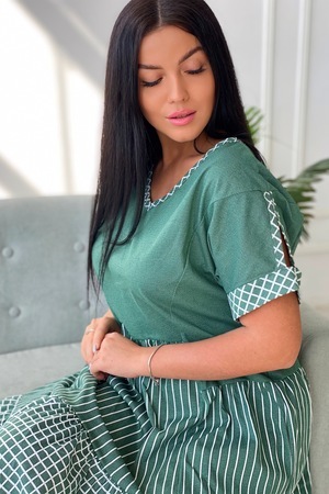 Виктория Викторовна07.07.2021 в 13:11Платье Великолепное. Спасибо дизайнерам компании НАТАЛИ. Покупала для мамы, взяла на размер больше, не прогадала. Качество отличное. Соответствует фото.Советую