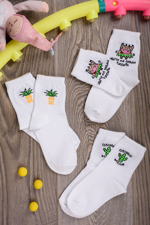 Набор оригинальных подростковых носков. Широкая резинка, на резинке вывязаны рисунки. В упаковке 3 пары - по 1 паре каждого вида