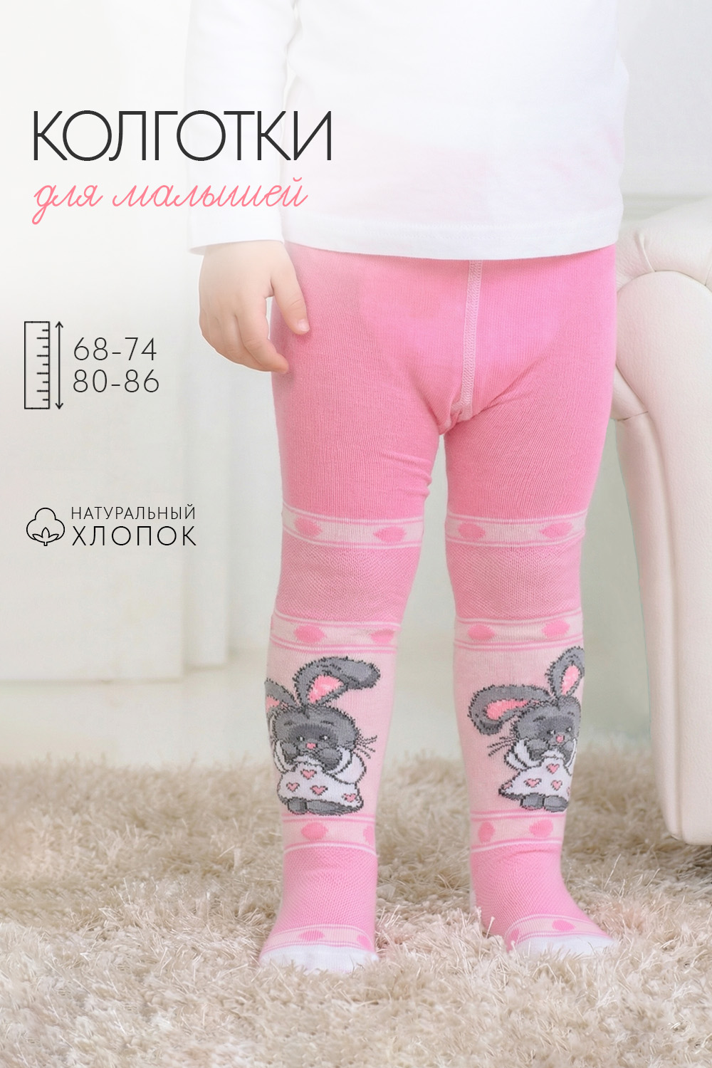 Милые колготки для самых маленьких. Нежные цвета - розовый и салатовый, спереди рисунок - симпатичный зайчик, сзади - сердечко
