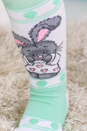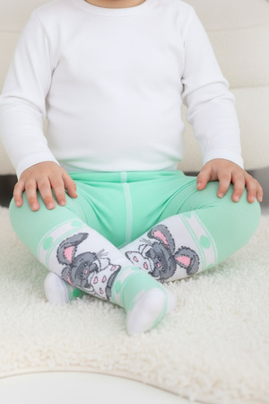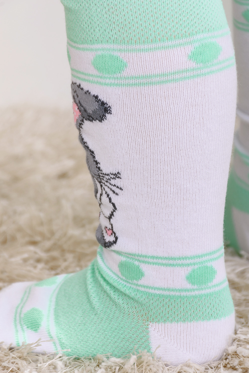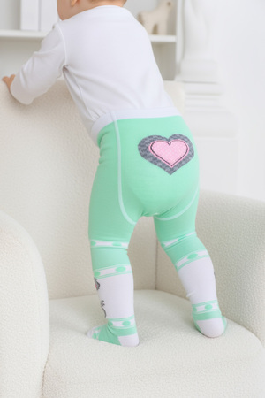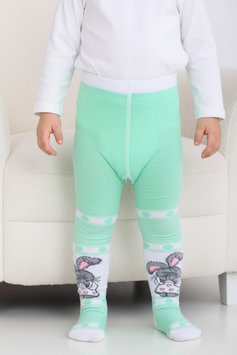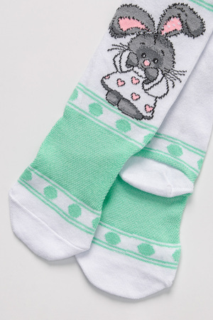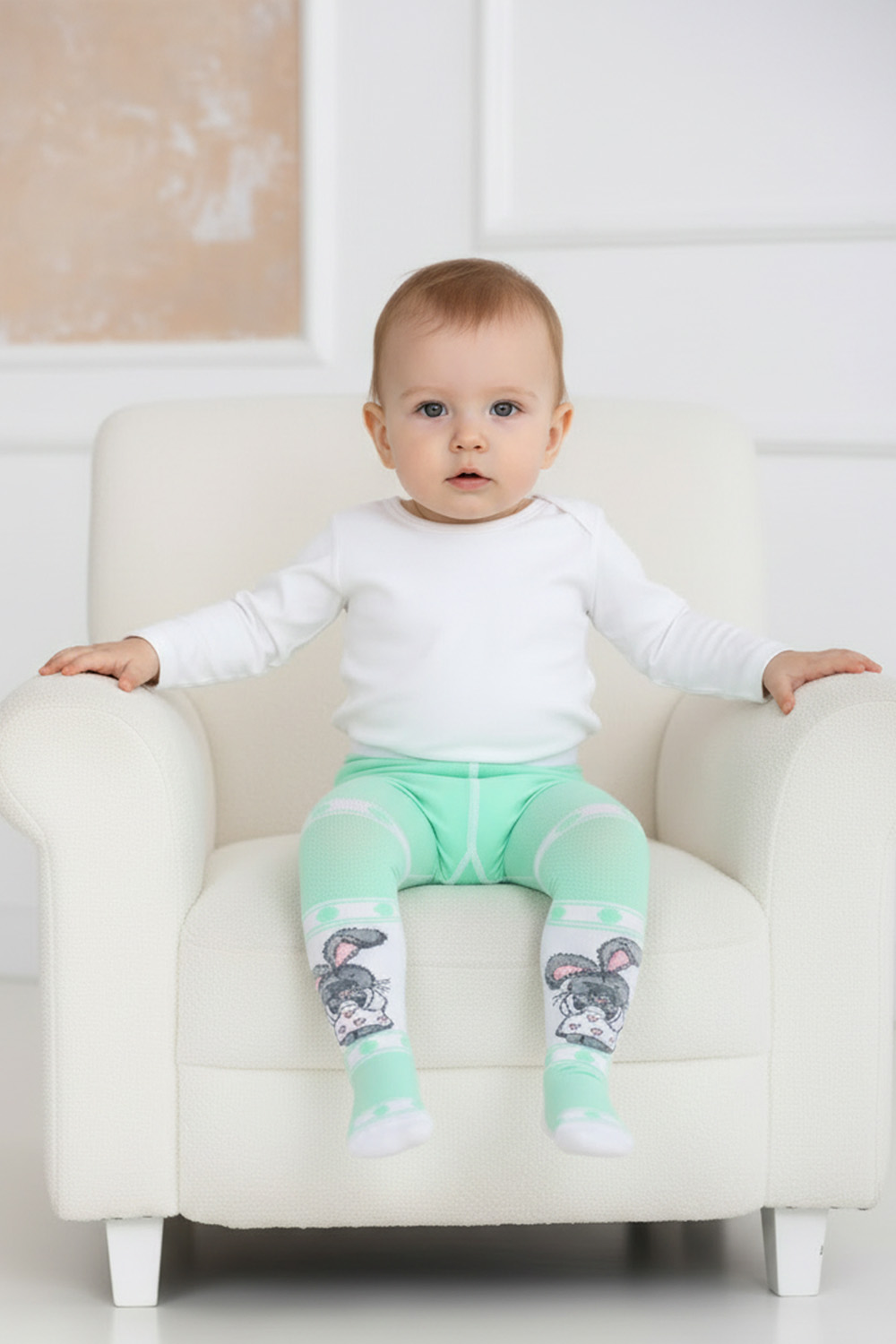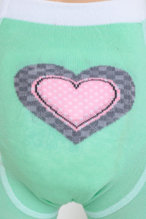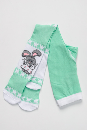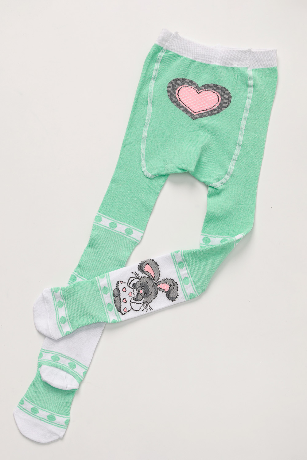 Милые колготки для самых маленьких. Нежные цвета - розовый и салатовый, спереди рисунок - симпатичный зайчик, сзади - сердечко