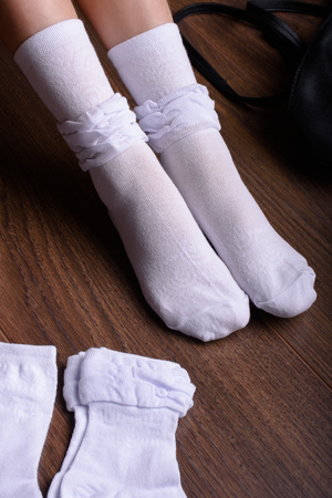 Комплект оригинальных носков с объемной рюшей. В упаковке 3 пары - по 1 паре каждого вида (гладкий носок без рюши с ажурным рисунком, носок с рюшей в центре и носок с рюшей по верху)