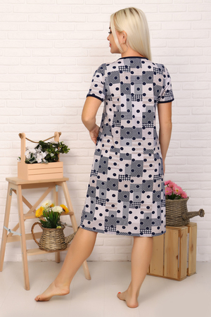 Халат на пуговицах с отделочной планкой по кокетке и боковыми карманами, короткий рукав, длинна по колено