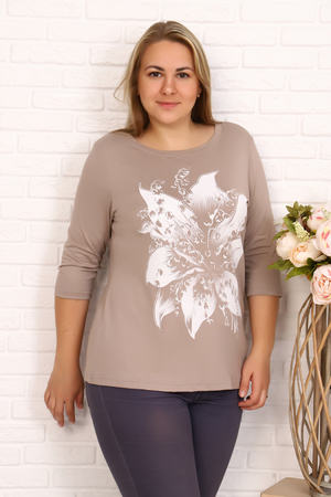 Футболка женская из вискозы Украшена печатью, рукав 3/4. Три варианта расцветки - черная, темно-синяя, светло-коричневая