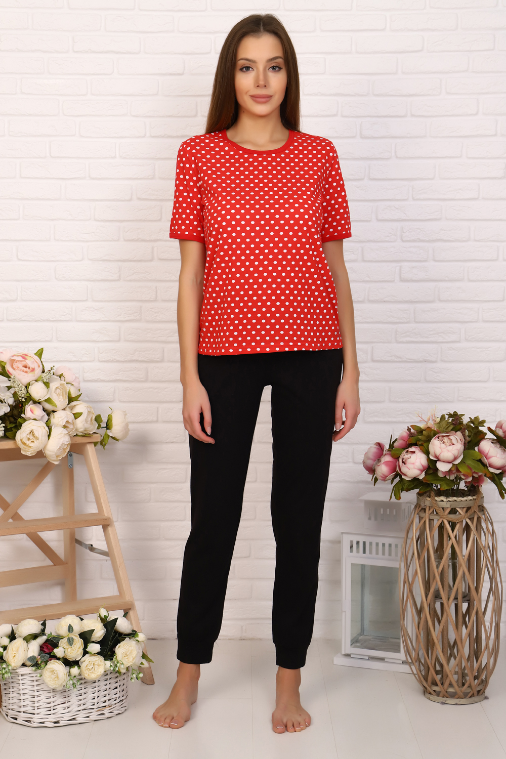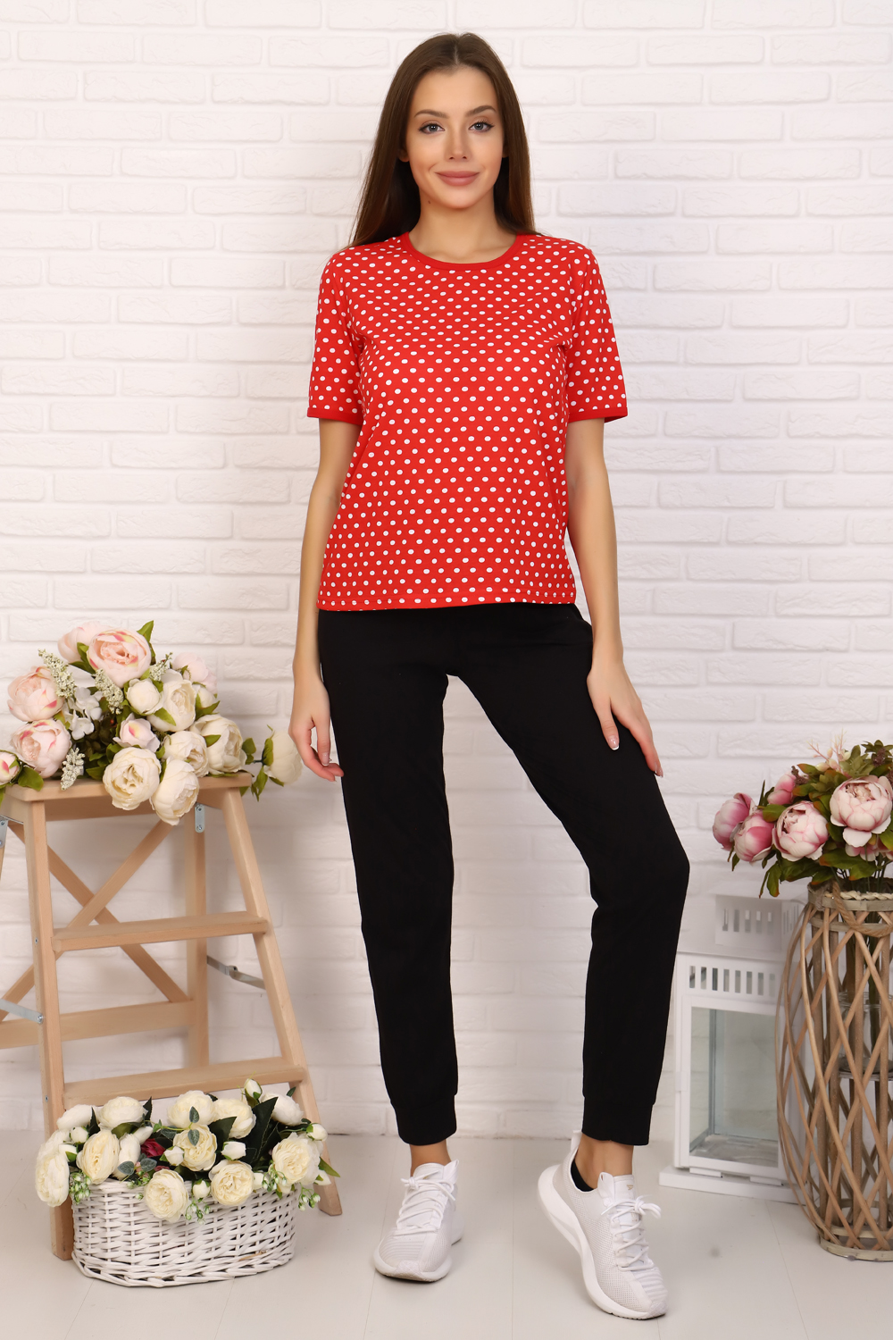 Костюм женский - футболка прямого кроя, брюки прямые, на манжете