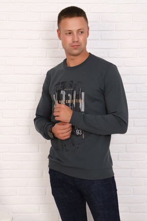 Толстовка мужская прямого силуэта, втачной рукав. Горловина, низ изделия и рукавов оформлены эластичным материалом.