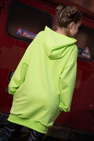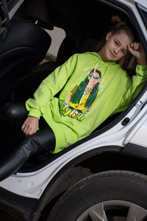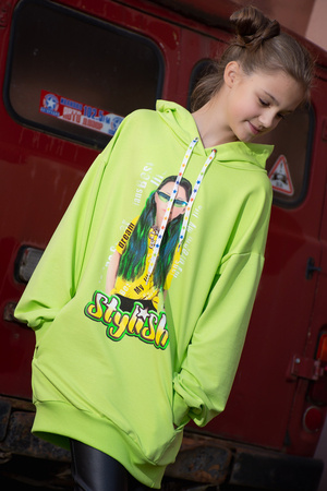 Современная толстовка-худи с капюшоном, без молнии, с внутренними карманами в рельефных швах. Рукава удлинённые. Манжеты выполнены из качественной ткани кашкорсе. Современный стильный принт. На фото представлена модель рост 150 см. Изделие 38 размера. В измерениях длина рукава указана от шва втачивания капюшона.