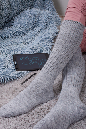 Вязаные женские носки. Двойная пятка и мысок. Антибактериальные мягкие резинки. Теплые, мягкие на ощупь. Не вызывают зуд и раздражение. Резинки не сдавливают ноги, что способствует нормальному кровотоку.