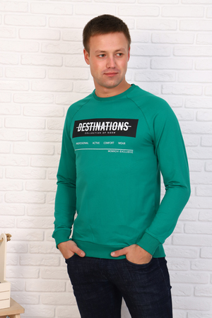 Яркая мужская толстовка из футера с рукавом-реглан и с принтом в виде надписи на груди.