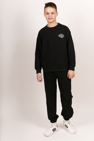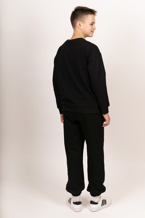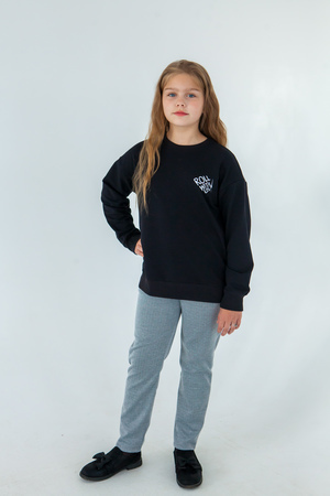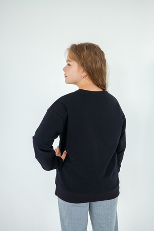Свитшот свободного кроя из футера с лайкрой. Полочка декорирована контрастной вышивкой белого цвета.
