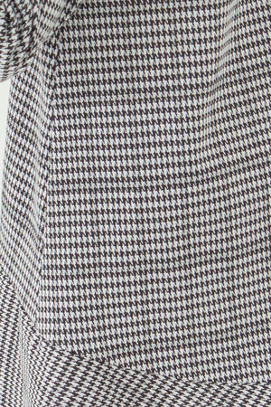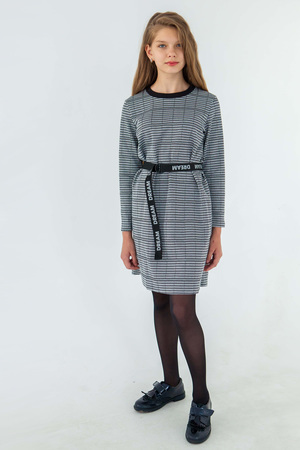 Прямое платье из трикотажного жакарда с актуальной в этом сезоне расцветкой - "гусиная лапка". Элегантным дополнением к нему является чёрный пояс, украшенный белой печатью. В зависимости от того, наденете Вы пояс или нет, зависит стиль платья. Если надеть его без пояса, то можно пойти в школу, а если добавите пояс, то можно пойти в нём в гости или на вечеринку.