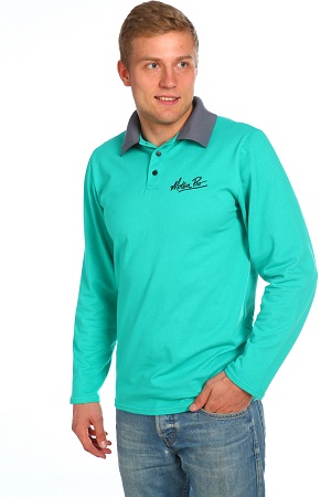 Классическая рубашка-поло с длинным рукавом. На полочке небольшая печать в виде надписи
