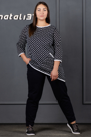 Туника выполнена из 100% хлопчатобумажного трикотажного набивного полотна. Горловина, рукав, карман и низ изделия обработаны белым кантом. Для удобства тунику дополняет накладной вместительный карман. Данная модель, скрывающая недостатки и подчёркивающая достоинства фигуры, будет радовать Вас своим комфортом.