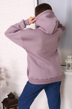 Толстовка молодежная из футера 3-х нитки с начесом, с двойным капюшоном, внизу на поясе, спущенное плечо, рукав цельнокроенный на манжете. На полочке кокетка, накладной карман, манжеты и пояс - рибана.