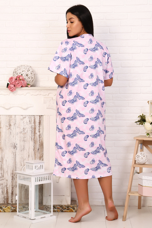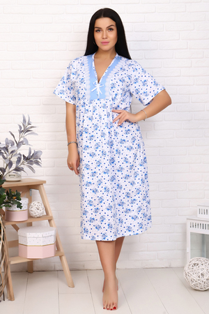 Сорочка женская из кулирки с кружевом, короткий рукав, на полочке кокетка из отделочной ткани.