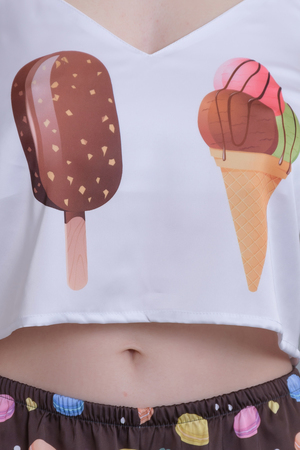 Комплект, заряжающий настроением! Нежная невесомая ткань практически не ощущается на теле и не сковывает движений. Благодаря удобному крою комплект хорошо сидит на любой фигуре. Топ с V-образным вырезом, мягкая резинка на спинке, а также регулируемые лямки. Отличный вариант для комфортного сна!