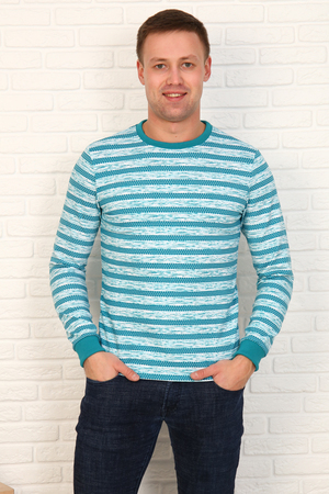 Джемпер мужской прямого силуэта с длинным рукавом. Горловина и низ рукава отделаны кашкорсе.