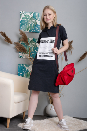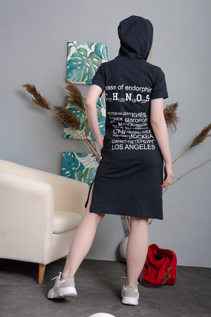 Молодежная туника из кулирки с капюшоном, с разрезом по бокам, печать на спине и на передней части, короткие рукава с манжетами