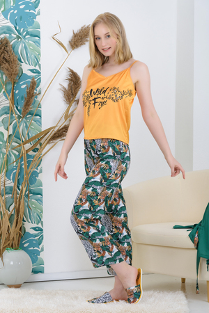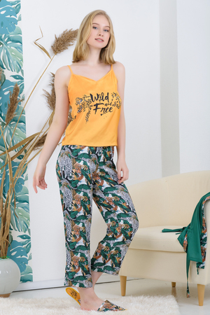 Майка женская на тонких бретелях, выполнена из нежного шелка Армани. На полочке выполнен стильный анималистичный принт. Идеально подойдет как для сна, так и для домашней одежды.