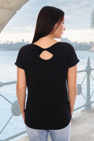 Футболка женская с мерцающим принтом из мягкого, эластичного трикотажа качества ПЕНЬЕ. Спущенная пройма обработана манжетом с отворотом. На спинке кокетка с драпировкой в виде "узла" с необработанными краями и вырезом в виде "улыбки", низ спинки слегка удлинён. Модель интересная, свободного покроя, подойдёт на любую фигуру.