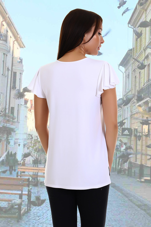 Модель полуприлегающего силуэта, длиной до линии бедер, с кружевной кокеткой спереди и планкой, визуально удлиняющей фигуру. Лёгкий и воздушный образ придаётся рукавами-крылышками. Романтический минимализм этой блузки проявлен как в крое, так и в цвете. Эта модель будет Вас радовать не только жарким летним днём, но и в холодное время года в сочетании с любым жакетом. Рисунок кружева может отличаться от фото