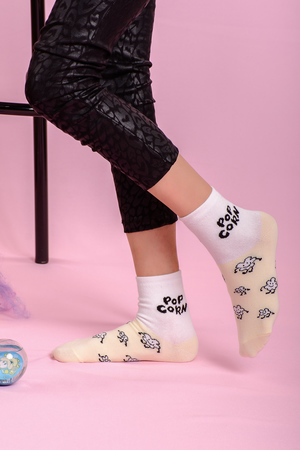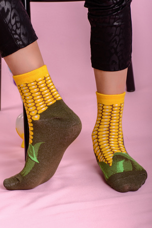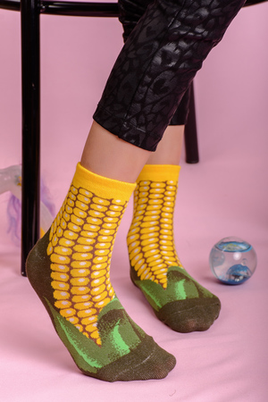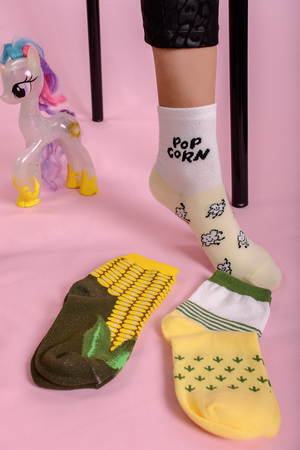 Набор оригинальных женских носков с рисунками в виде кукурузы. В упаковке 3 пары в спайке под крючок