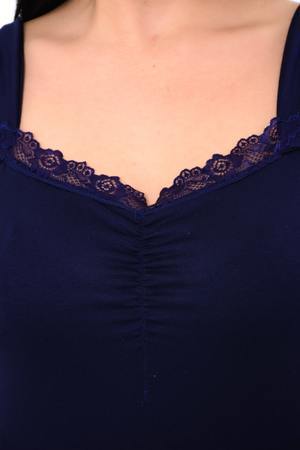 Сорочка на широких бретелях, по груди отделка из кружева, низ изделия обработан кружевом